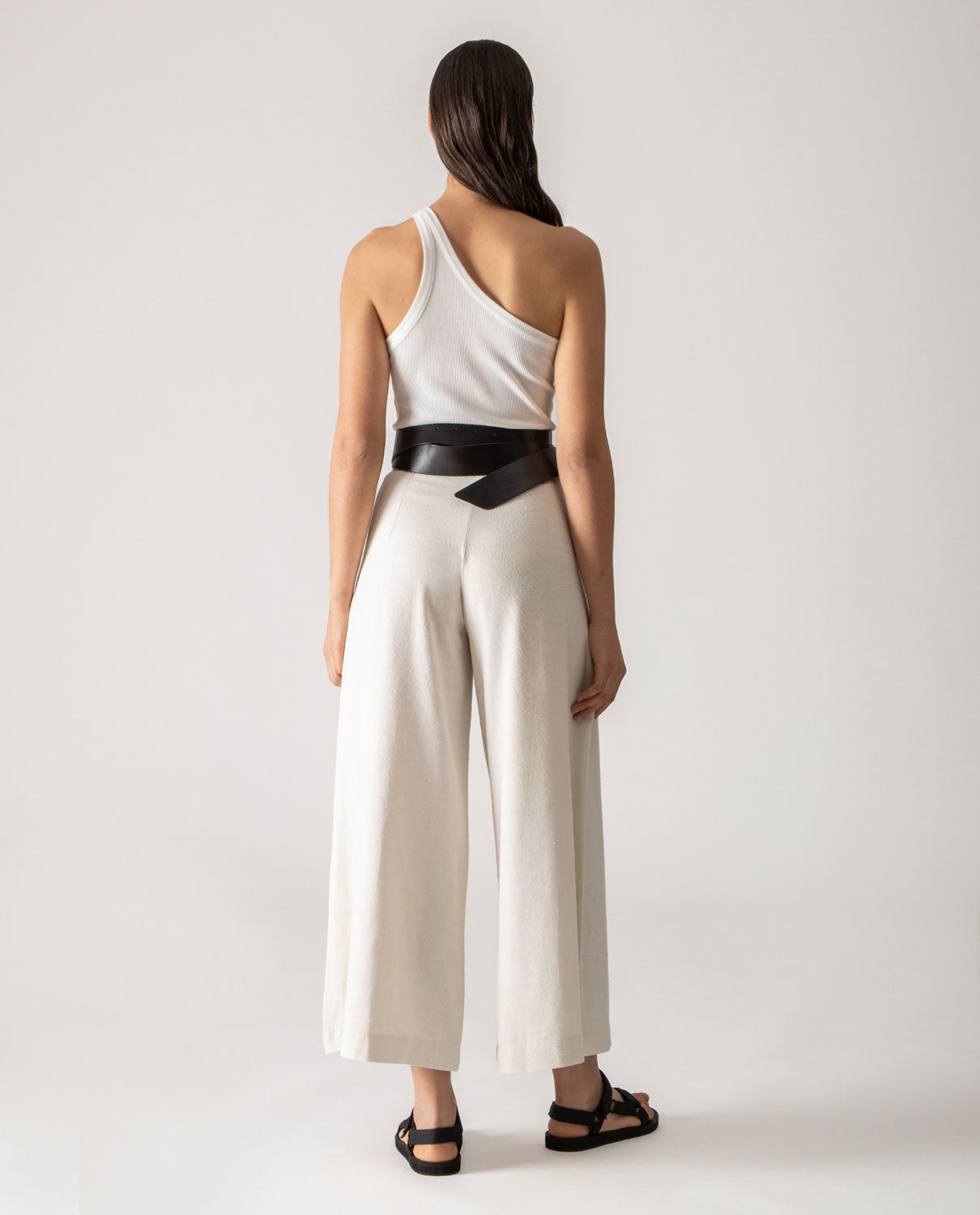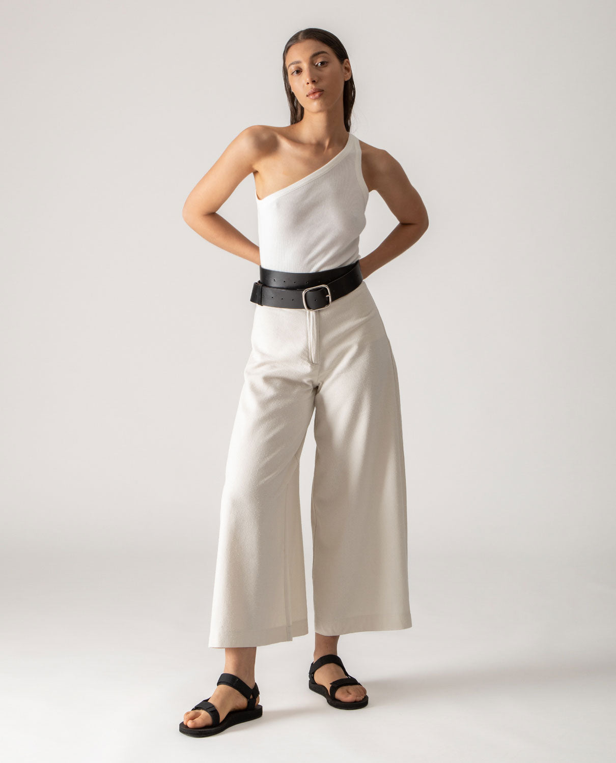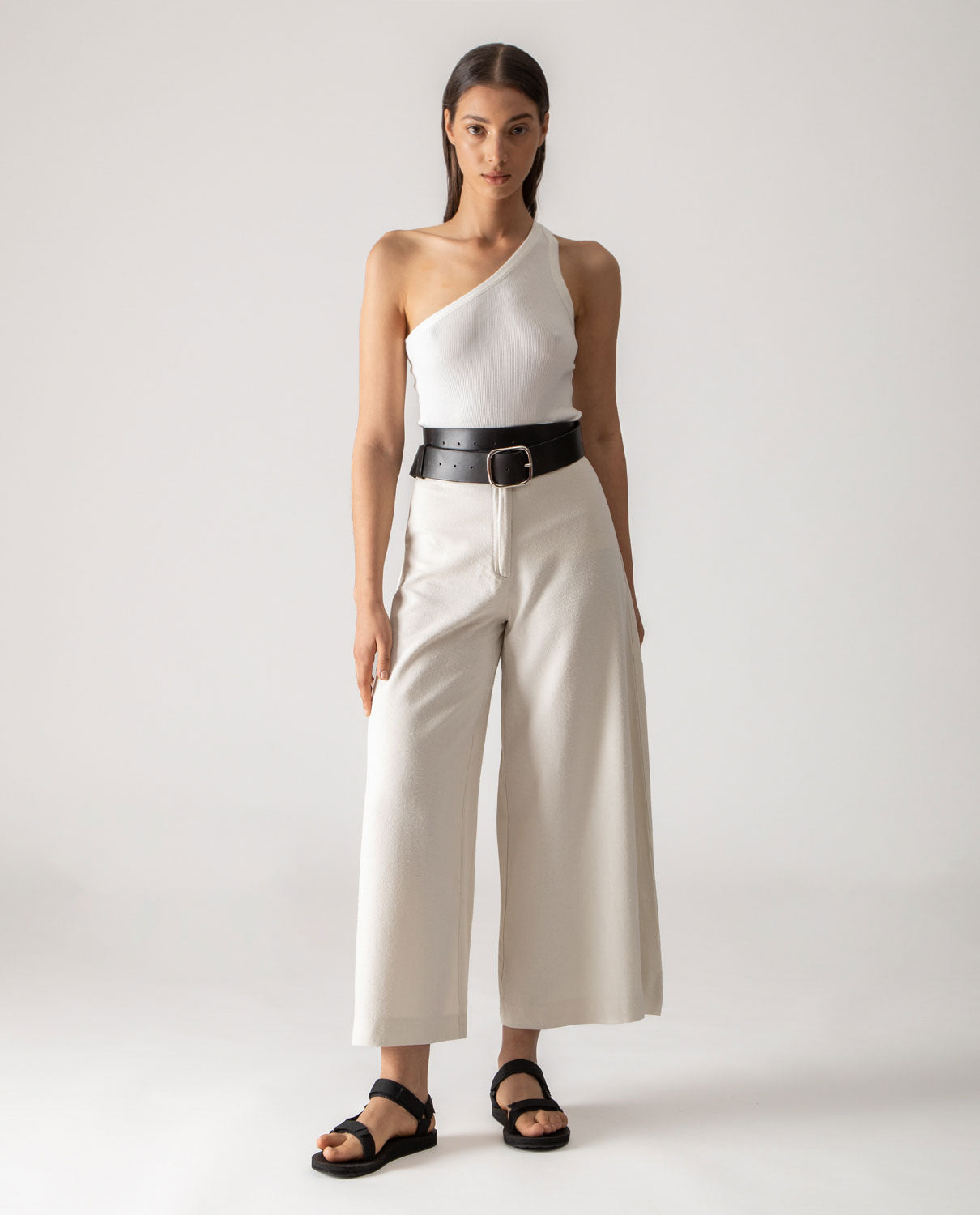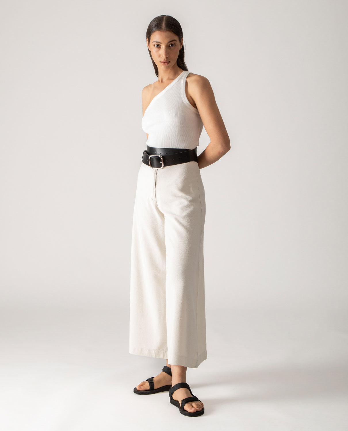 One shoulder tank-top in ribbed cotton canvas.